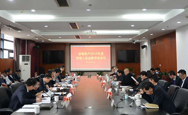 2017年1月11日,浙商資產(chǎn)管理有限公司在公司大會(huì)議室召開(kāi)2016年度管理人員述職考評(píng)會(huì)議,公司本級(jí)中層管理人員及成員公司主要負(fù)責(zé)人近50多人參加了會(huì)議。會(huì)議由黨委書(shū)記鄭順民主持,公司領(lǐng)導(dǎo)班子成員參加了會(huì)議。