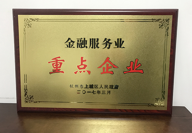 2017年3月,浙商資產(chǎn)榮獲上城區(qū)人民政府頒發(fā)的金融服務(wù)業(yè)重點(diǎn)企業(yè)獎(jiǎng)牌。