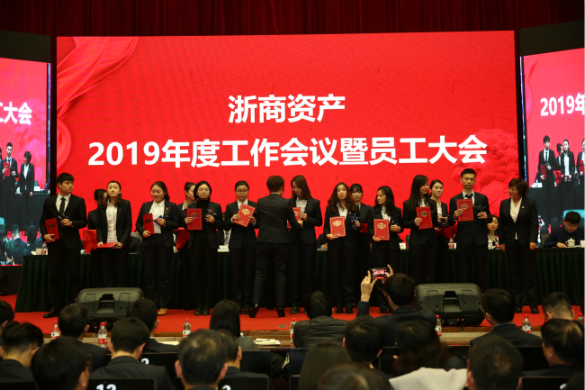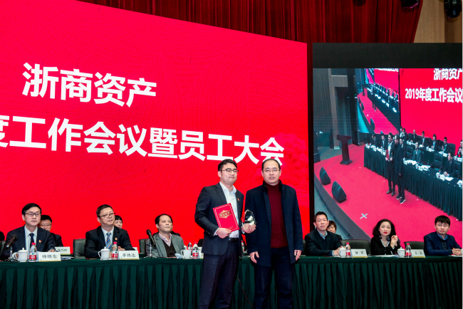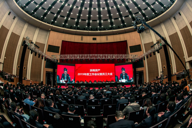 1月25日,浙商資產(chǎn)召開2019年度工作會議。省地方金融監(jiān)督管理局金融保障處吳登寬處長,浙商資產(chǎn)董事、監(jiān)事、股東代表,全體領導班子成員、業(yè)務副總經(jīng)理,浙商資產(chǎn)本級及下屬成員公司全體員工(含億利達公司的部分代表)等共計近500人參加了會議,會議由副董事長徐曉東主持。