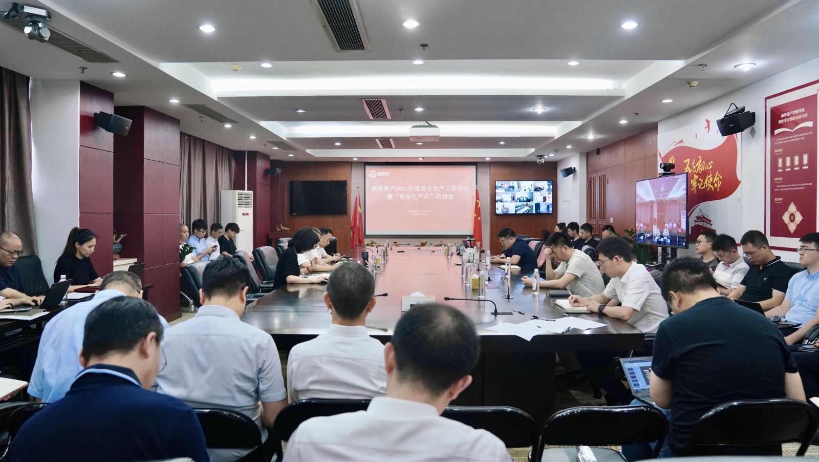 6月11日上午,浙商資產(chǎn)召開2021年度安全生產(chǎn)工作會(huì)議暨“安全生產(chǎn)月”啟動(dòng)會(huì)。公司黨委副書記、總經(jīng)理李偉達(dá)作重要講話,公司黨委副書記陳霖講授安全生產(chǎn)公開課,后勤保障部(安全生產(chǎn))介紹了“安全生產(chǎn)月”活動(dòng)方案。本級(jí)各部門負(fù)責(zé)人、安全員,在杭成員公司主要負(fù)責(zé)人、安全管理部門負(fù)責(zé)人、安管員等合計(jì)60余人現(xiàn)場參會(huì),異地成員公司相關(guān)人員視頻參會(huì)。